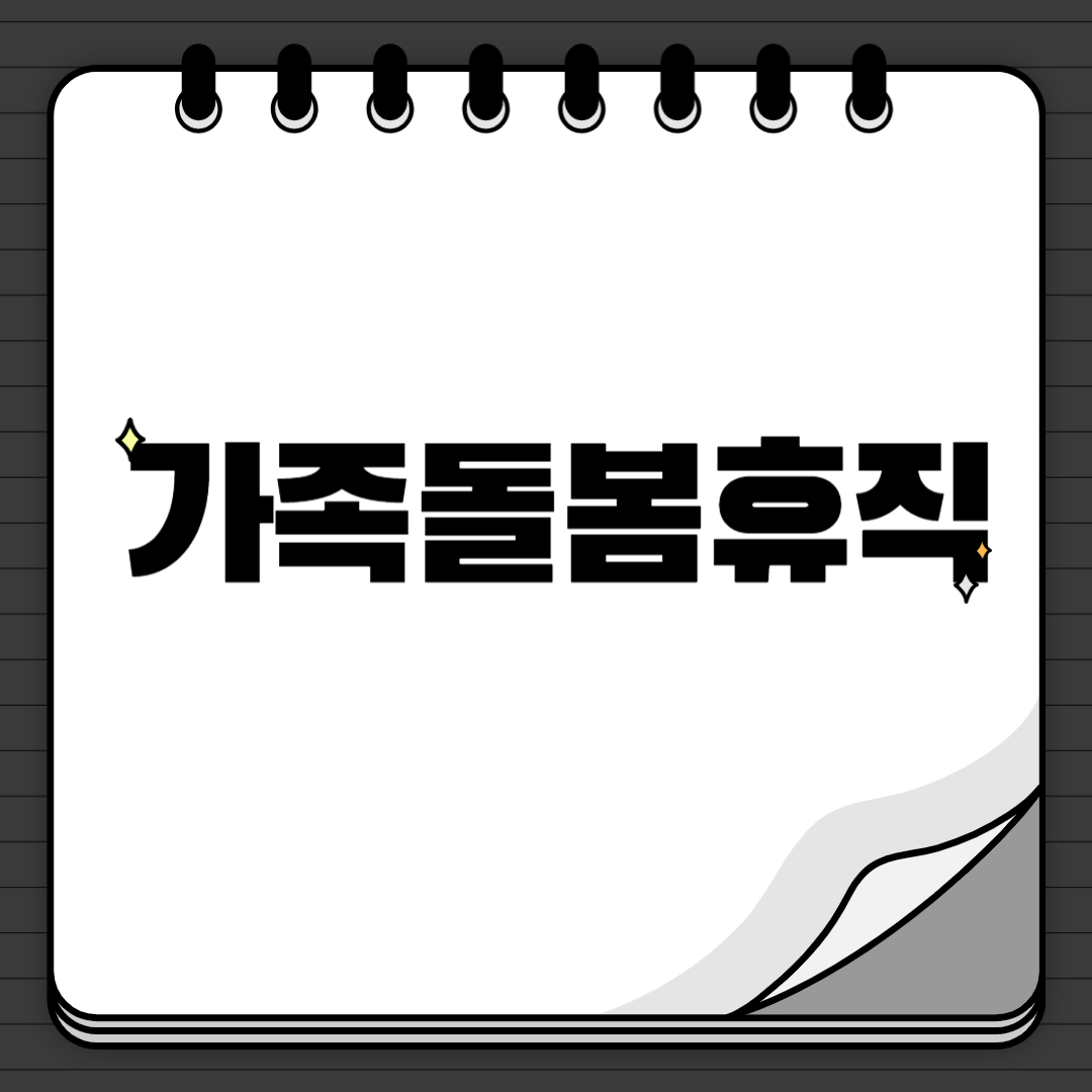 가족(부모, 자녀, 배우자, 배우자의 부모)이 질병, 사고, 노령으로 인해 돌봄이 필요한 경우에 사용할 수 있는 휴직 제도로 휴직가능기간은 연간 90일이며 한 번 사용할 때 최소 30일 이상을 사용해야 합니다.