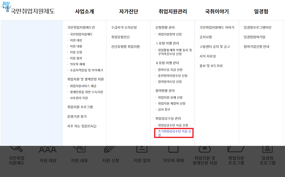 5. 국민취업지원제도 조기취업성공수당 신청방법