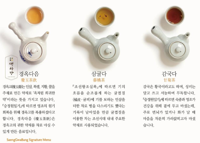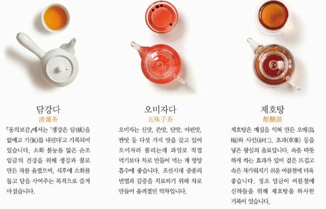 궁중약차 - 경옥다음, 삼귤다, 감국다, 담강다, 오미자다, 제호탕