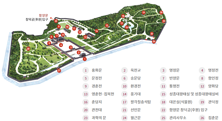 임글들이 *편전(便殿)으로 즐겨 사용하던 곳이다. 함인정(涵仁亭)이 있는 자리는 성종 15년(1484년)에 건립한 인양전(仁陽殿)이 있었던 자리였으나 임진왜란 때 소실되었다. 그 후 인조 11년(1633년) 함인정(涵仁亭)이 건립되었고 순조 30년(1830년)에 소실 되었다가 순조 34년(1834년)에 중건 되었다.