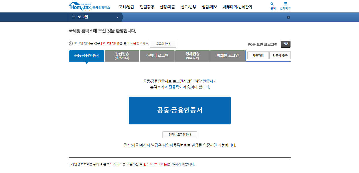 *공동·금융 인증서/간편인증으로 로그인할 경우 소득자료를 불러올 수 있습니다.