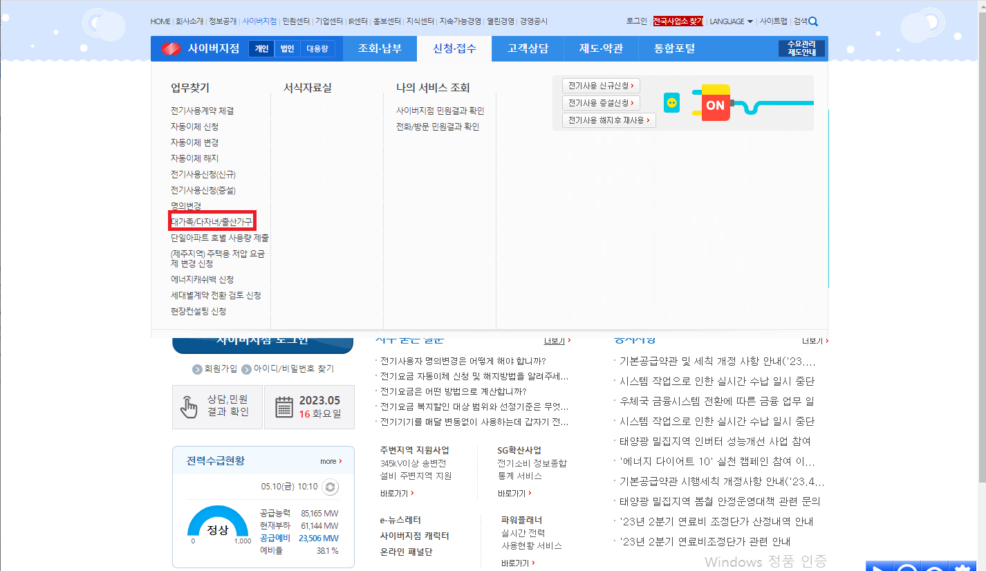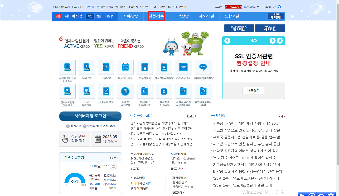 ①온라인 신청은 한국전력 사이버 지점 사이트 에서 할 수 있습니다.