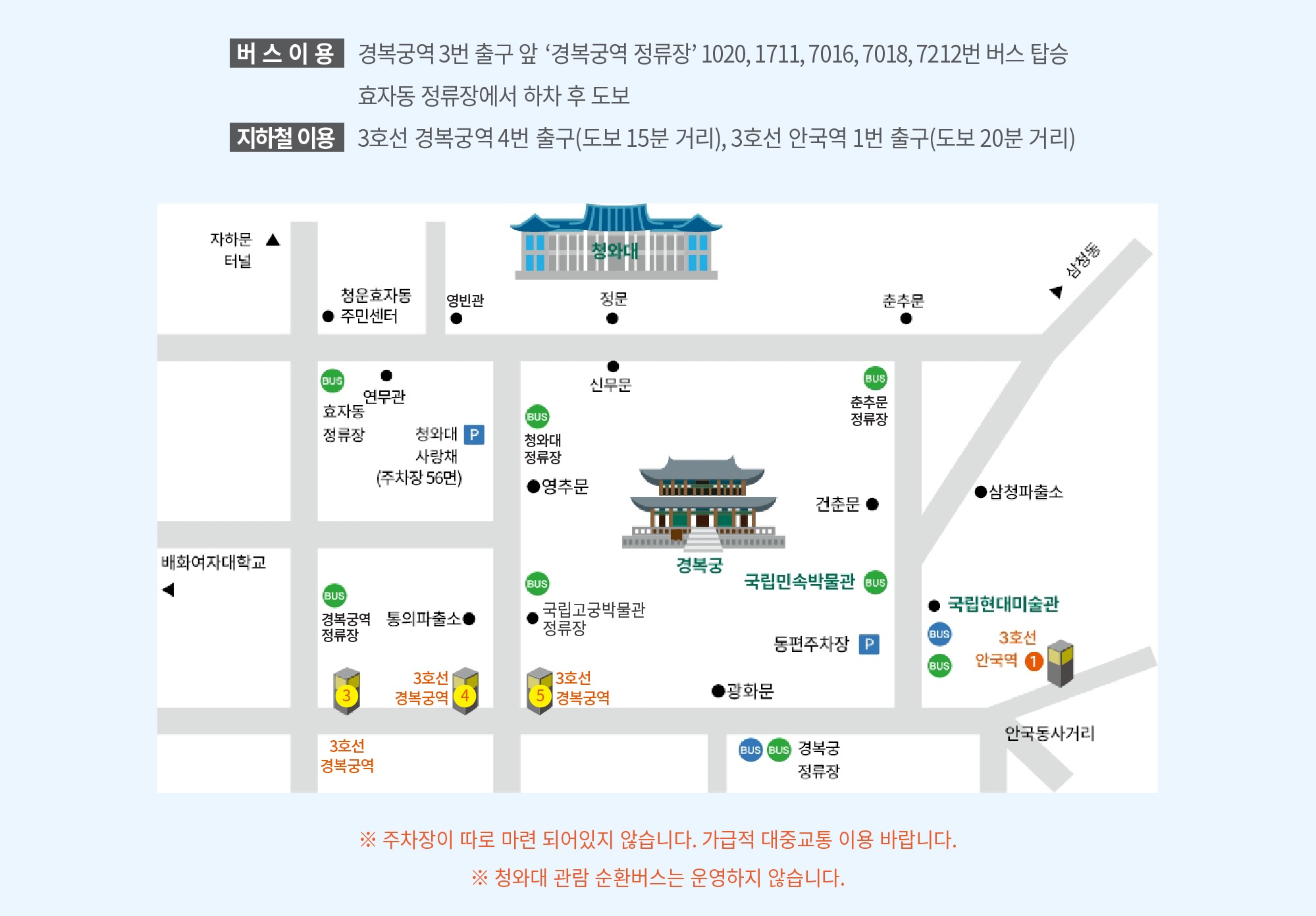 장 소 : 청와대 일원 (영빈관, 춘추관 관람 제외)