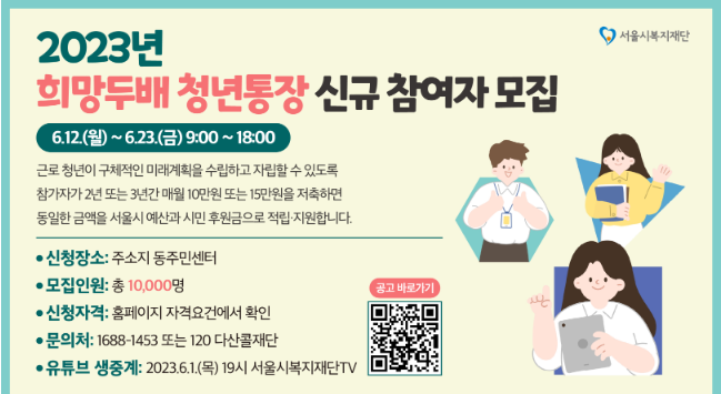 서울시 희망두배청년통장·꿈나래통장 콜센터 ☎(국번없이) 1688-1453